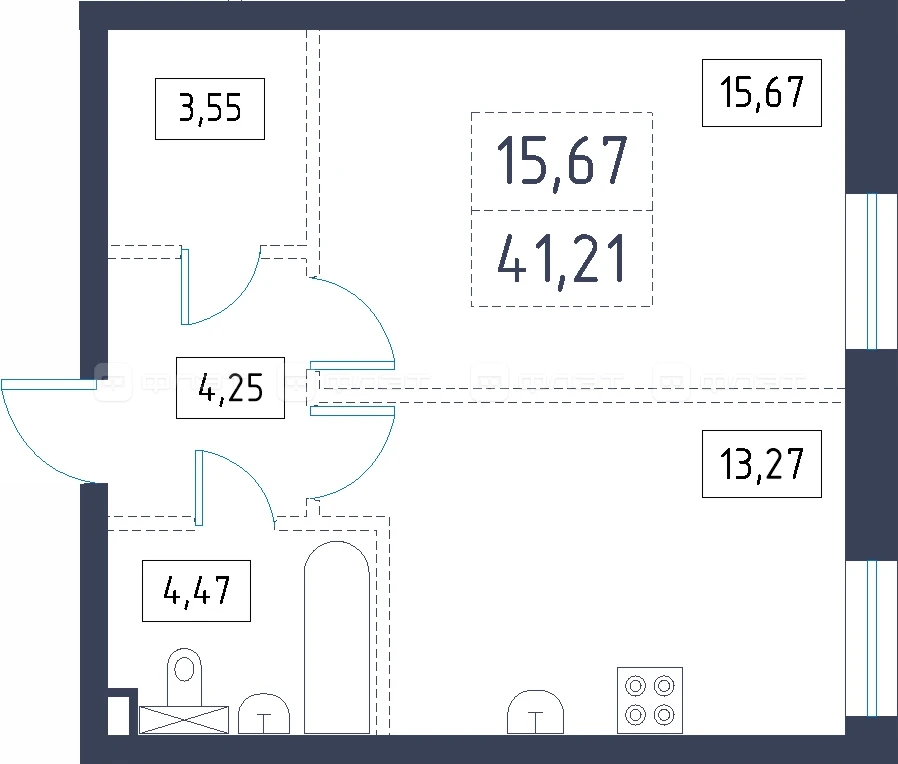 - 41.21/15.67/13.27 м²